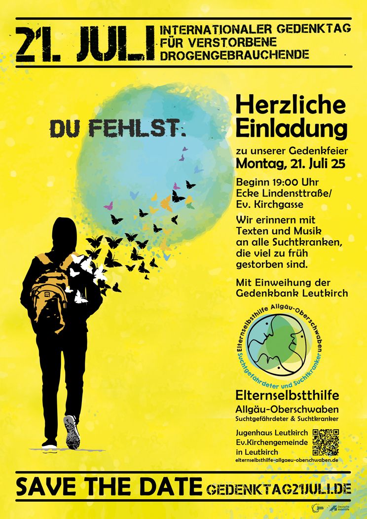 Mit diesem Motto soll zum Ausdruck gebracht werden, dass ein einschneidendes Ereignis wie eine Überdosierung sowie der Tod von Drogengebraucher*innen auch durch Langzeitfolgen von HIV und Hepatitis jeden und jede betreffen kann. Betroffen sind auch Eltern und Angehörige sowie Partner*innen, Mitarbeiter*innen im Hilfesystem und Bekannte wie z.B. Nachbarn, wenn sie jemanden kannten der an den Folgen einer Überdosierung verstirbt. (Text von